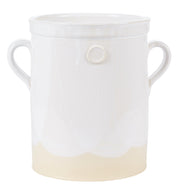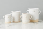 Handcrafted from white European clay, the Handthrown Pottery Collection is created by European artisans on an original potter’s wheel. The pieces are inspired from classic European kitchens, mixing traditional designs with contemporary style. While each item is different and will vary due to the handcrafted technique used to create them, each piece boasts a unique lush glaze to enhance authenticity. The raw clay is left untouched on the bottom, while the top portion is dipped in a warm, white lead-free, non-toxic glaze for the perfect mix of traditional design and contemporary style.