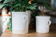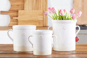 The utensil crocks were inspired by an Italian staple, the olive jar. The ceramic pots come in three sizes, small, medium and large, each exerting the same effortless beauty as the next. With a clay seal on each side and sturdy handles, the jar is the ideal utensil holder next to your stove or as a flower vase on your counter.