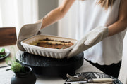 These stoneware bakers have endless possibilities and can also be used for serving as it moves from the oven to the table seamlessly without the need to transfer your meal to another dish.