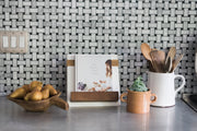 Elevate your kitchen with the Modern iPad / Cookbook Holder, a versatile piece that blends function and style. Crafted from reclaimed acacia wood and finished in crisp white, it features a natural slat design, sturdy lip, and built-in stand to keep your recipes, tablets, or cookbooks at the perfect angle while you cook.