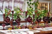 Elevate your home decor with a pair of Merlot Glass Candlesticks. These expertly crafted dark red taper candle holders add a touch of timeless elegance to any room. Available in two sizes and several colors, they are perfect for adding a pop of color to your dinner party or creating a statement throughout your home. Mix and match the sizes and colors to create a memorable tablescape.