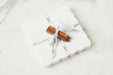 Add a touch of charm to your kitchen with the Small Square Scalloped Board. Crafted from durable acacia wood, this petite board features elegant scalloped edges and arrives ready to gift—tied with luxe etúHOME ribbon and paired with four cheese markers labeled Goat, Parmesan, Brie, and Cheddar.