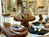 The dramatic silhouette of a classic wine bottle demijohn inspired our Glass Dome. The glass dome is topped with a black iron ring handle. This decorative accent is handmade and pairs with serveware like cake stands, trays and trivets for a large array of styles and arrangements.