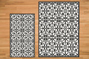 The Liberty L rug features a black and white pattern.