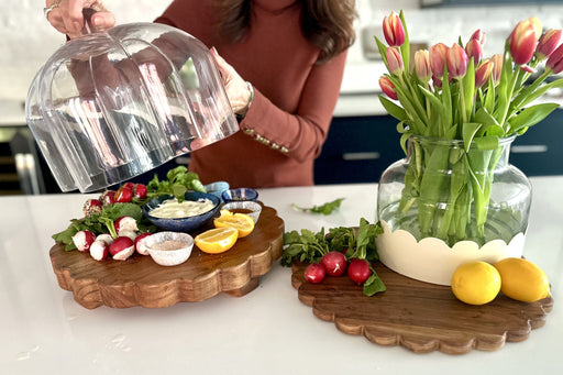 Discover the perfect blend of modern style and whimsical charm with our Round Footed Scalloped Board. The unique scalloped edges add movement and s...