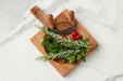 As beautiful as it is functional, this board can double as a decorative display. Arrange fresh produce or kitchen essentials on it to make it a centerpiece on your countertop. The board is paired with a mini, double-bladed mezzaluna, making it an excellent gift for home chefs or anyone seeking to elevate their kitchen tools.