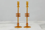 Amber Glass Candlestick Pair, Large
