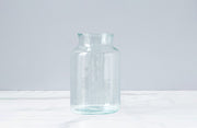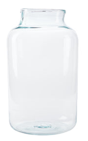 In villages throughout Europe, these wide mouth glass jars were used for the summer harvest. Our mason jars are made from recycled glass blown into authentic casts to retain their characteristic appeal. Stunning on their own, in pairs or in a set, the ability to mix and match sizes adds interest to the display, but the free form of the vessel ensures it is perfect as a singular decorative accent.