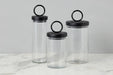 The Ring Top Canisters are a thoughtfully crafted storage set that brings modern elegance to everyday organization. Each canister features a tall silhouette made from recycled glass, paired with a distinctive top crafted from reclaimed mango wood and salvaged iron. The lids are fitted with rubber gaskets to help keep contents sealed and fresh—combining beauty with everyday function.