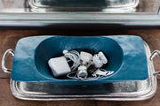 Handcrafted by European artisans, the Navy Dough Bowl is inspired by those that were once used for making and kneading dough. Redesigned for the modern home, this bowl has been finished in a high-gloss, plant-based blue wax. This dough bowl is food safe, making it perfect for serving bread, tossed salad and pasta dishes. Each wooden bowl is handcrafted from reclaimed wood, therefore maintaining its authentic markings and carvings. The artisanal nature of each bowl makes it a special and contemporary accent for your home.