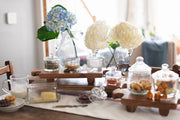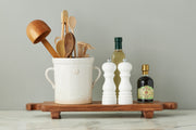 The Normandy Riser combines natural elegance with versatile function, making it a beautiful and practical addition to any kitchen countertop. The footed board can be used sink-side to display soap and dish brushes, or it can be used as elevated serveware to showcase baked goods. With handles on either side, this riser can be carried with ease throughout the home. Crafted from richly grained acacia wood, each board features unique wood patterns, showcasing the beauty of sustainable materials and artisanal craftsmanship. Whether used for serving or decor, this piece effortlessly brings warmth and style to your space.